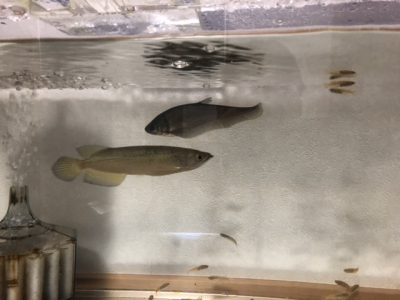 とりあえず、ノーザンバラムンディとコチョウザメのいる水槽に入れたのですが、ノーザンと喧嘩しそうですよね。(汗)