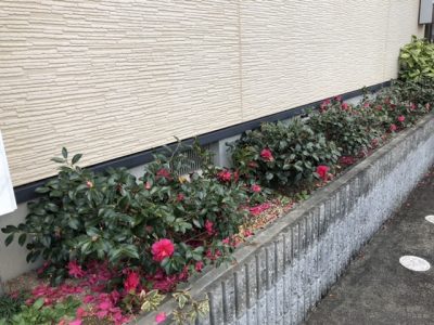 ちなみに同じ寒椿でも、這寒椿と立寒椿(獅子頭)の2種類あるらしく、ウチの寒椿はあまり高くならない這寒椿の方です。