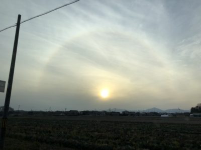 昨日外出中に日暈を見ました。太陽の周りに虹の輪ができる現象です。