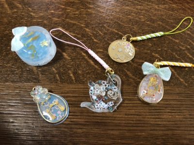 透明のボンドみたいなので固めてアクセサリーを作るもの、とでもいうのでしょうか。