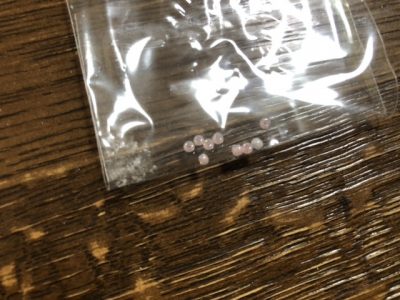 色も付けたいのですが粉を買ってこなかったので、ビーズを砕くことに。