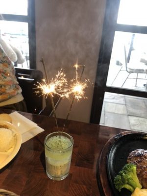 そして、子供たちのお子様プレートには花火がついてました。(笑)