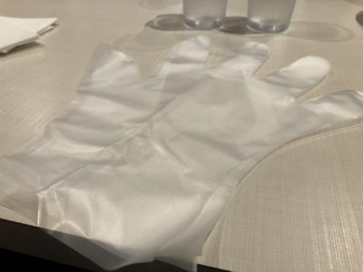 そして、ステーキorハンバーグ以外はビュッフェスタイルなので、取りに行く場合はマスクと手袋を着用とのことでした。