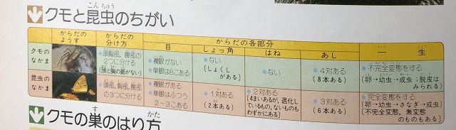 クモと昆虫のちがい(『旺文社学習図鑑 昆虫』 旺文社 1983年より)