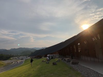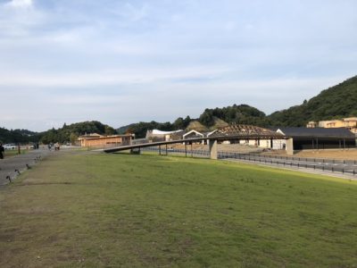 建築物に木がふんだんに使われています。デザインも素敵ですが、木のぬくもりや明るさが目にやさしいです。その場で眺めているだけでも森林浴している気がします。実はこれ、伊勢神宮の式年遷宮に合わせて、20年に一度作り直す構想のようです。地元の三重の木がアピールでき、かつ林業の助けにもなりますね。