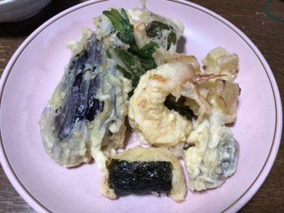 とにかくたくさん食べて満足の天ぷらでした。子どもたちはさつまいもくらいでしたが、これからもっと食べるようになるのかな…大皿3枚分揚げたので翌日も食べました(^-^;