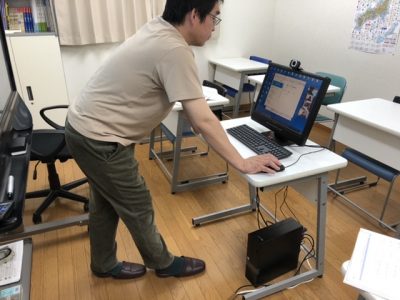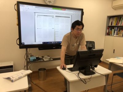 教室には講師しかいません。パッと見ただけでは正直何をしてるかわからない感じです(笑)。