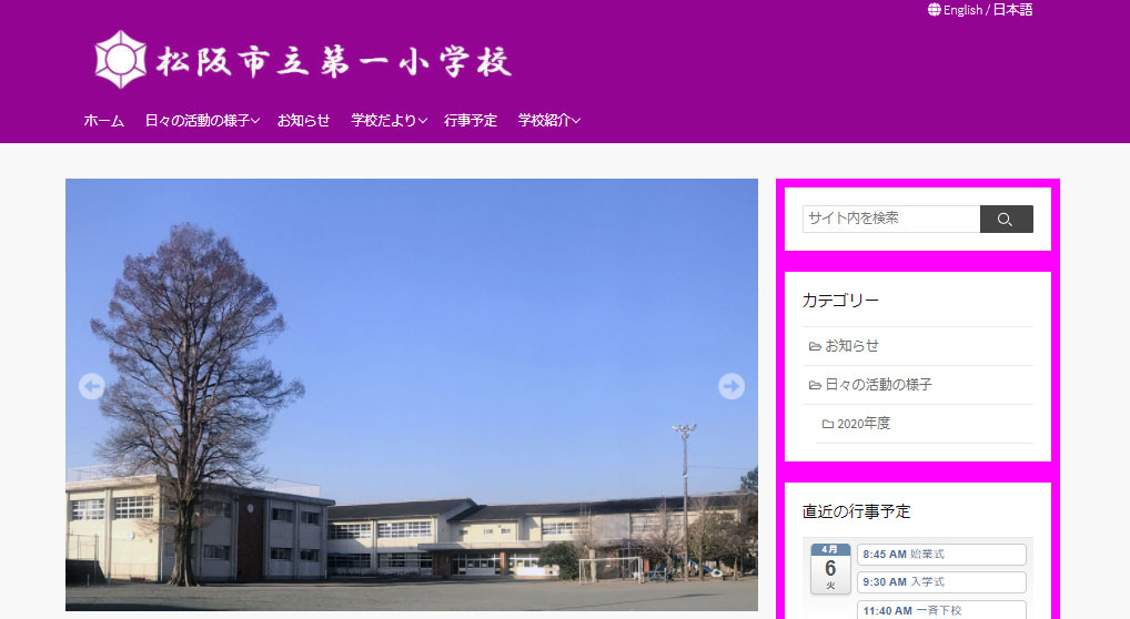 第一小学校WEBサイト外観