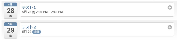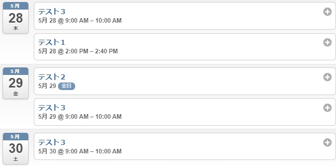 5. 公開すると、ページ上では下のようになります。(1日の中では「全日」が最上位に、あとは時系列に表示されます。)