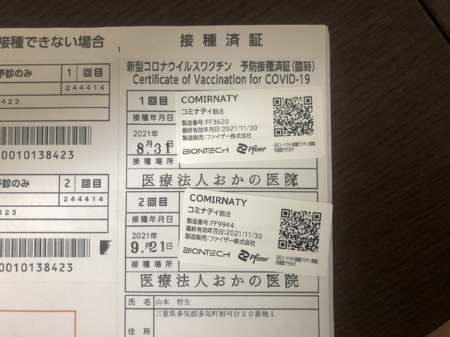 新型コロナウイルスワクチン接種済証 – 2021年9月