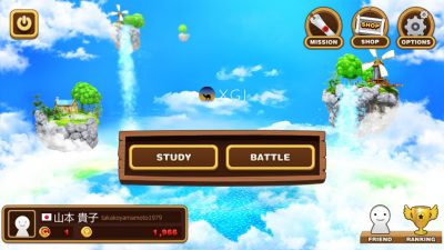 一人でするときは「STUDY」から、二人で闘うときは「BATTLE」から入ってください。